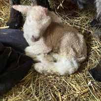 Dorthy had a black and blue (gray) ewe lamb out of Bruce on April 19th. She is tiny and such a beautiful little girl